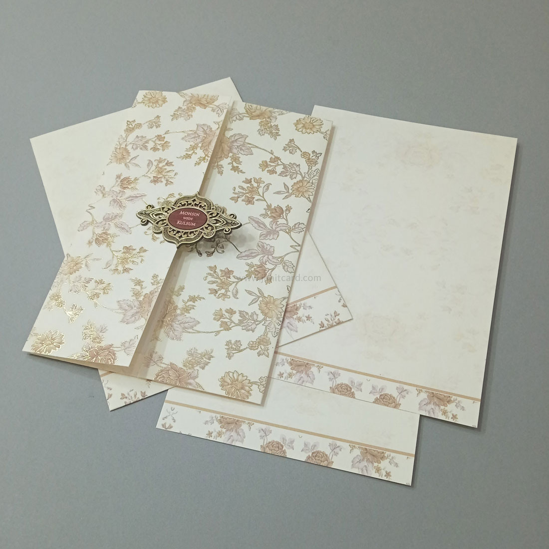 Middle Door Open Style Invitation Card With Floral Pattern | 8389PC