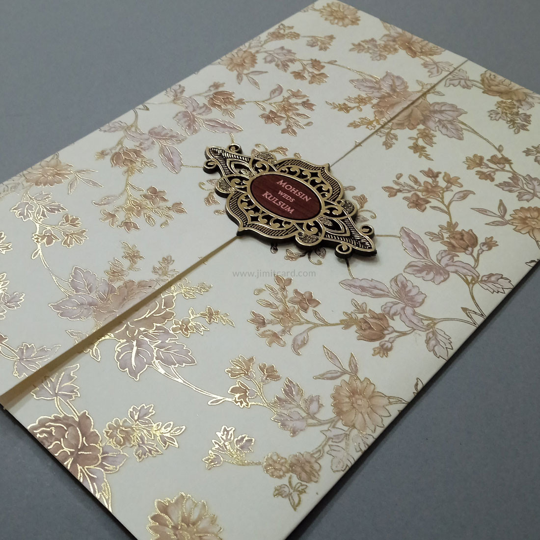 Royal & Exclusive Hardbound Invitation Card With Floral Print | 2336JC